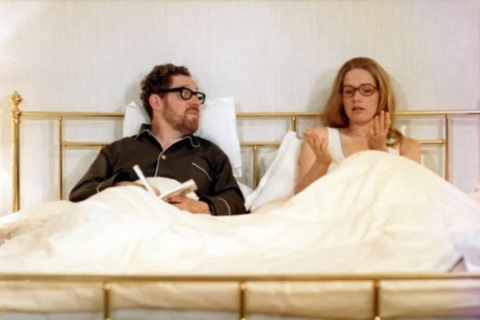 我们被引导着看到米拉的自私和操纵——不是因为她想离开,而是因为她无情离开的方式。友好提醒:对没有看过伯格曼版本的人来说,这可能算剧透。与原著相反,妻子在一天晚上走进卧室,宣布第二天就要离开丈夫,去和与她有婚外情的年轻男子一起生活。震惊又受伤的丈夫恳求她留下。