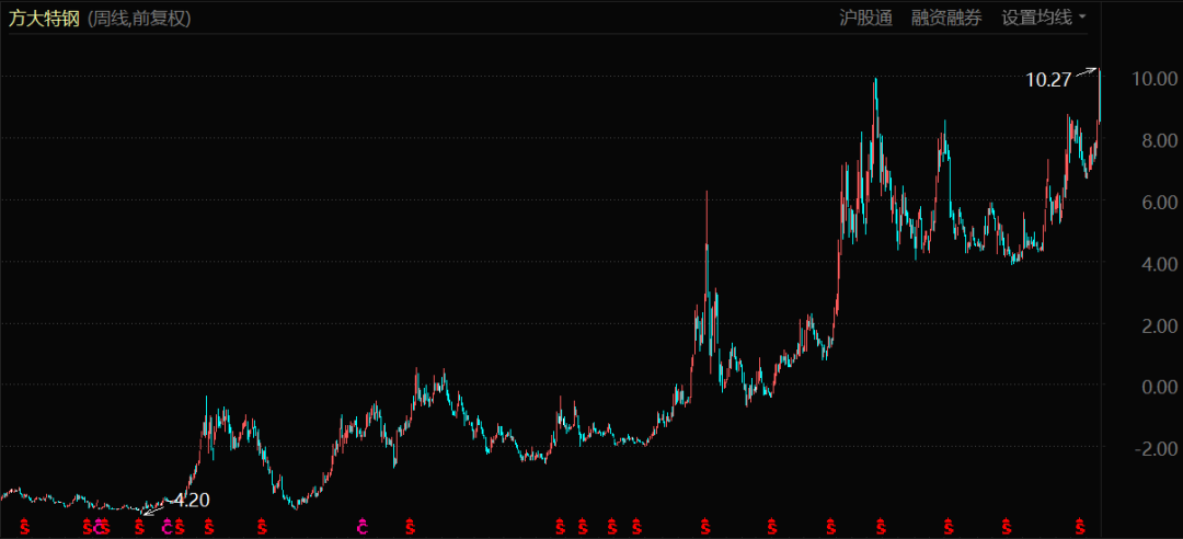 最具代表性的就是旗下上市公司方大特钢,目前6倍多的市盈率、180亿元以上的市值,已经超越了2018年冲出的历史最高股价和市值。