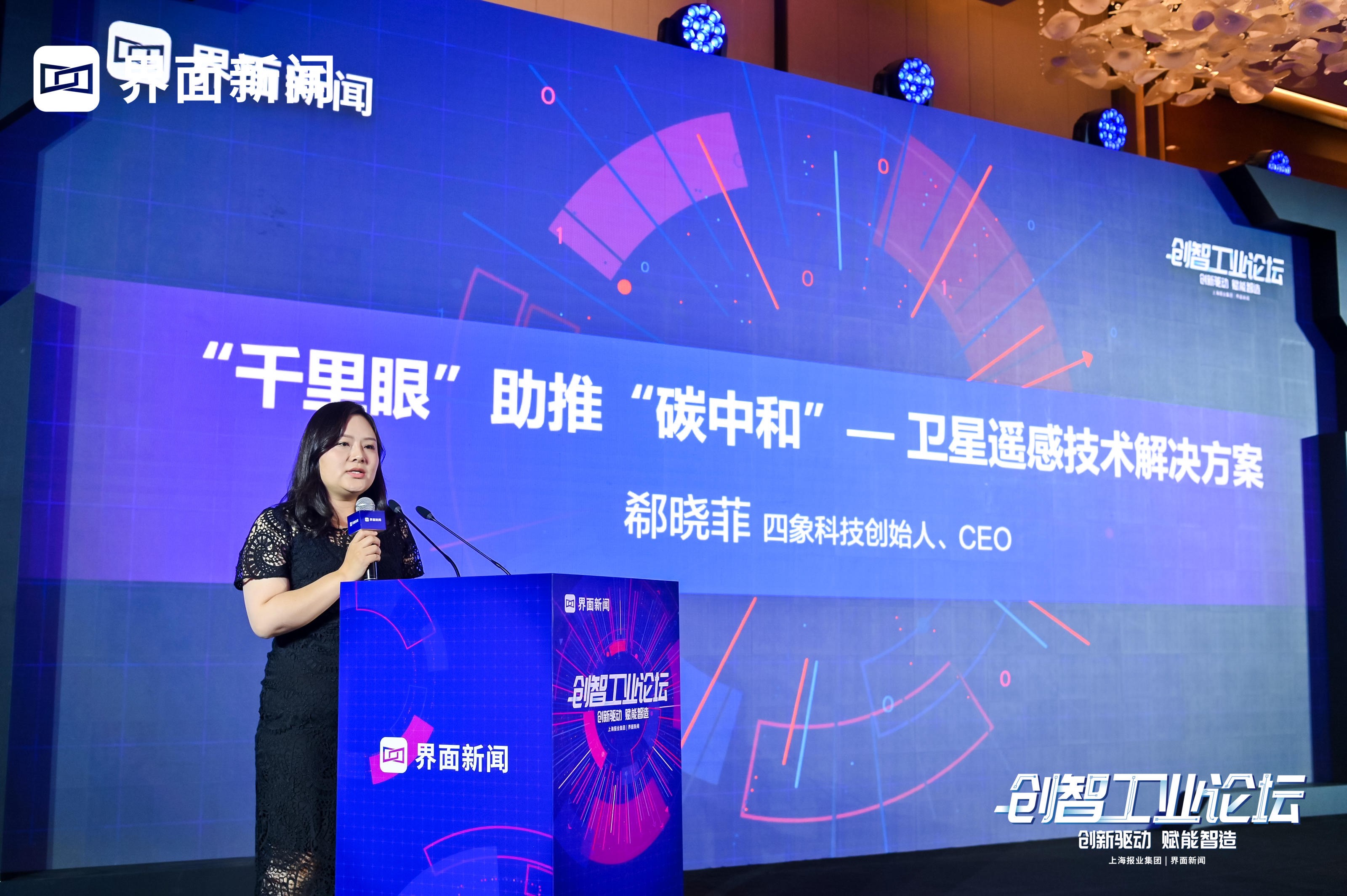 2021年9月16日,由上海报业集团 | 界面新闻主办的2021【创智工业论坛】在上海虹桥康得思酒店举办,北京四象爱数科技有限公司创始人郗晓菲以《“千里眼”助推“碳中和”——卫星遥感技术解决方案》为题,发表了主旨演讲。