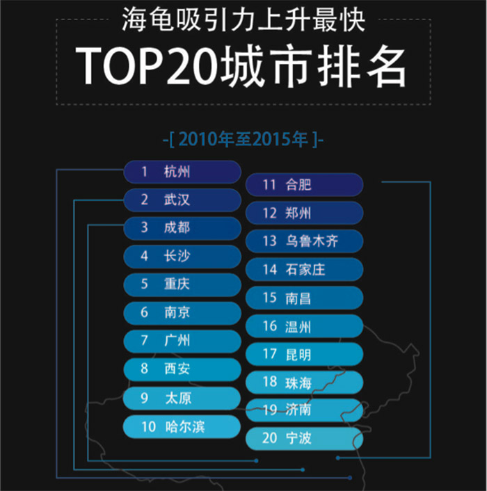 回国后第一份工作选择在一线城市落脚的人员在近年来有所下降,而杭州、成都、南京等新一线城市的海龟就业人员占比不断上涨。