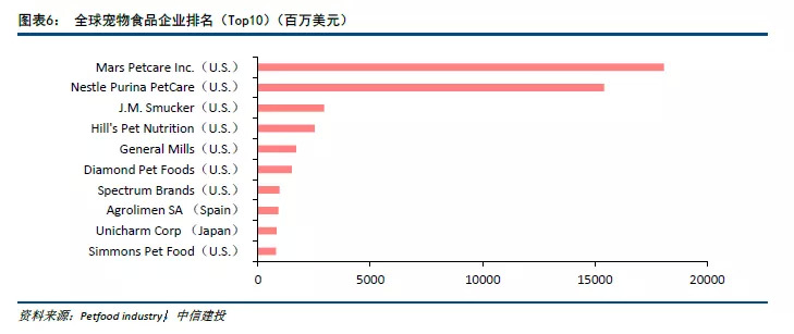 从供给侧来看,美国在全球宠物食品行业具有压倒性优势。根据Petfood industry的统计,2020年全球前十大宠物食品企业中,有八家是美国公司。