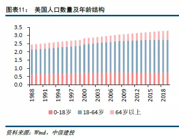 美国小型犬的数量增加,人口结构变化则被认为是重要原因。通过以下图表可以看到,从2009年开始,美国64岁以上人口的占比就持续增加。中信建投在其研究报告中认为,老年人口增加,更易照顾和携带外出的小型犬,成为新增养宠人群的首选。
