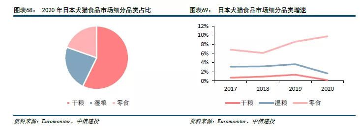 在日本,宠物零食市场保持高增长,干粮和湿粮的增速则开始下降。