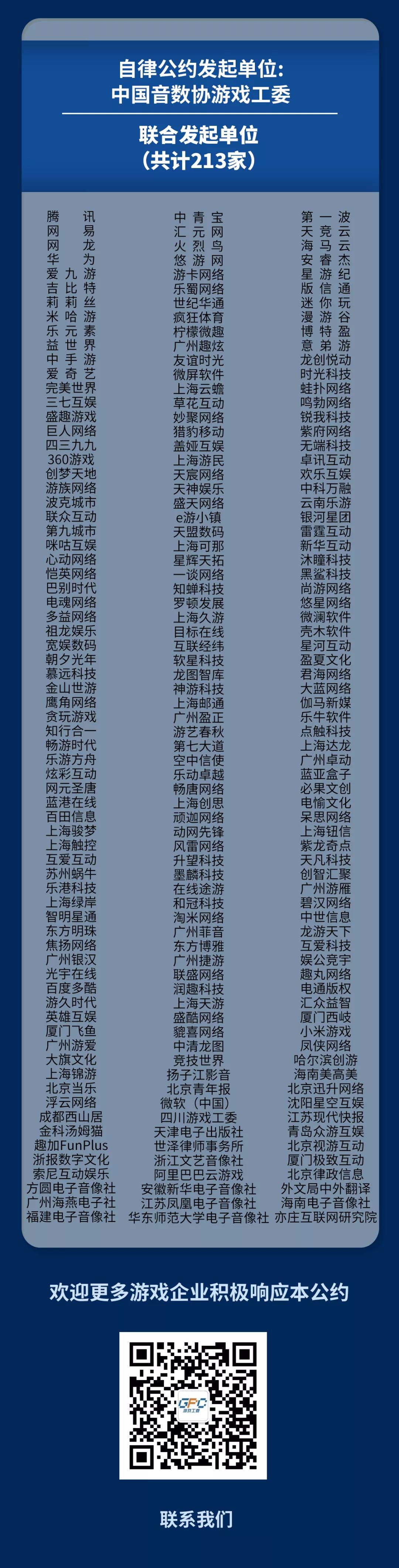中国音数协游戏工委9月23日晚间在其官方微信公众号发文称,中国音数协游戏工委组织发起《网络游戏行业防沉迷自律公约》。全文如下: