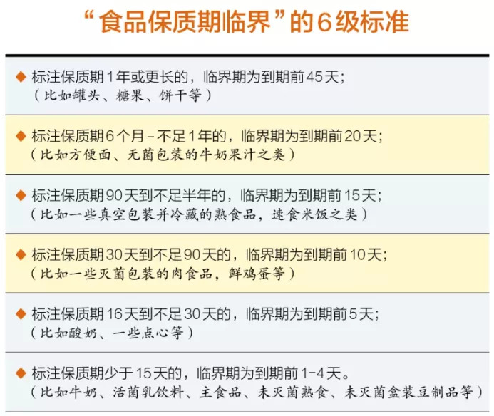 图:“食品保质期临街”的6级标准(来源:北京市工商局)
