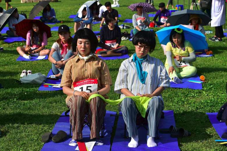 上周日,60名参赛者在韩国首尔顶着大太阳相约发呆。跟往届一样,这次比赛期间也不允许说话、睡觉、进食或者玩手机,全程有工作人员记录心率,甚至作恶逗你笑……(松懈即淘汰,out!)