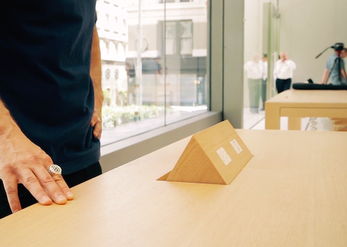值得一提的是,全新天然橡木光滑展台由Ive亲自设计,由于内置动作传感器,顾客可以体验到自动翻转式电源和USB接口,这一设计也将在全球苹果店推行。