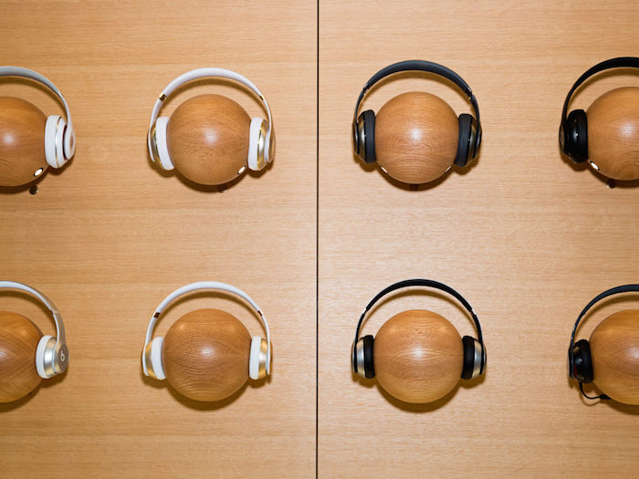 耳机被放置在一个个木球上,顾客试用之后耳机会自动收缩,不仅提高了零售服务的效率,也保持橱窗产品的整齐。