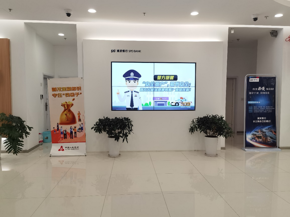 宣传活动中,支行营业厅各部分展示播放宣传标语与视频,厅堂醒目位置设置了宣传活动海报和折页,推广反诈app,利用客户等候时间,工作人员主动向客户介绍货币反假、投资理财风险防范等基础金融产品和服务相关知识,不断增强公众风险防范意识和责任意识,提醒公众远离非法金融活动,守护资金安全。
