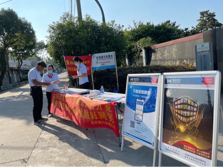 与此同时支行还开展了线上线下相结合的社区宣传与“双百双千”宣传活动。线上,支行采取通过社区网格管理员在社区微信群发送我行公众号宣传推文、H5等社区网民喜闻乐见的宣传形式,开展金融知识和案例宣传,弘扬金融正能量,倡导争做金融好网民,引导社区网民增强网络安全意识、风险防范意识。线下、支行宣传队伍分别来到长安社区,赛格特花园小区、阳明街道潘巷村、畈周村与旗山村,开展金融知识进万家宣传活动,工作人员借助海报、宣传手册以及横幅等多种形式,向居民普及电信网络诈骗犯罪方式和具体防范措施,用乡村群众看得懂、听得进、用得上的方式普及金融知识,提升金融服务质效。
