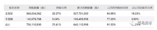 此外,未来一年内到期(包含前述未来半年内到期)的质押股份累计数量为5.82亿股,占其所持股份的82.37%,占公司总股本的20.93%,对应融资余额为9.81亿元。王忠军、王忠磊还款来源于自有及自筹资金,具有相应的偿付能力。
