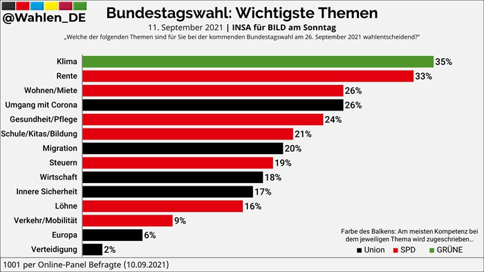 在民调机构INSA发布的调查中,退休金是选民关注度第二高的议题,仅比气候变化低2个百分点。贝塔斯曼基金会的民调中,退休金的关注度排名第三。