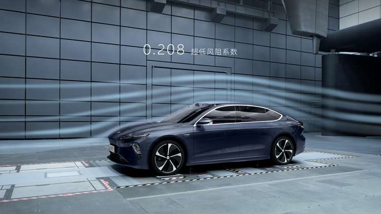为达成0.208的风阻系数,蔚来召集中国、美国和欧洲的三大研发团队,历时2年,通过800多次空气动力学仿真模拟及120小时的风洞测试,才最终将此前的0.23提升至0.208。