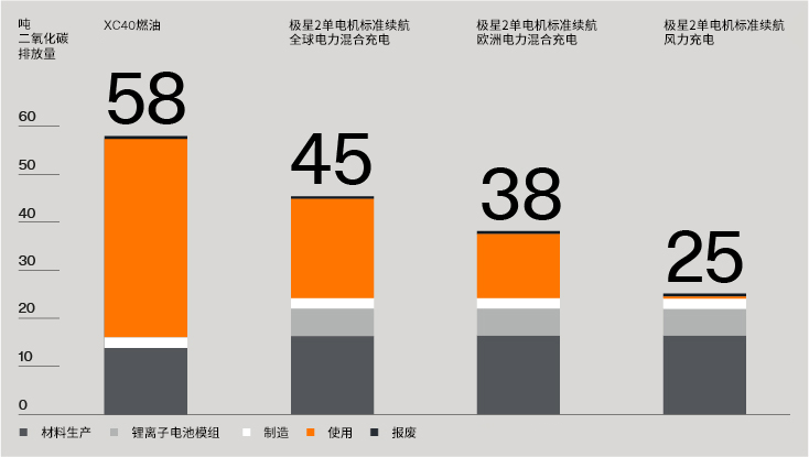 在近期发布的LCA生命周期评估报告中,极星采用完整的生命周期评估方法,对旗下所有电动汽车的碳足迹做出了计算。数据显示,极星2单电机版本车型下线时,总共产生碳排放量为25吨。而此前推出的极星2双电机版本,则总共产生26吨碳排放。