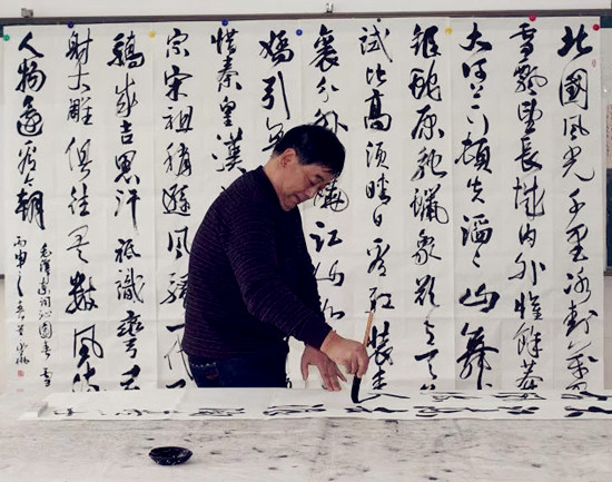 董永华:这个问题给我戴了一个太高的帽子,我只是一个普通的老师,谈不上艺术人生,只能讲一下教学感受。我的教学对象比较广泛,小到八九岁大到成人,作为书法人搞好书法,要以艺术为准,千万不能把金钱看的太重,作为老师不能以教个学生多少钱,一幅作品多少钱为目标。我教的学生收费标准是国家标准,费用很低,而最让我有成就感的则是教出来的学生在书法比赛中获奖,那比收多少钱有用得多。
