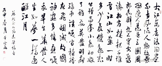 董永华:王羲之的书法像美女一样优美,又非常雄劲。我写书法是从“二王”入手,追溯殷商文字及汉魏碑帖,研习米芾、黄庭坚、王铎等名家书道。曾受权希军、刘文华等老师的指教,书法强调用笔精巧,高古潇洒,拟古而出新,注重线条的纯净和节奏之美。