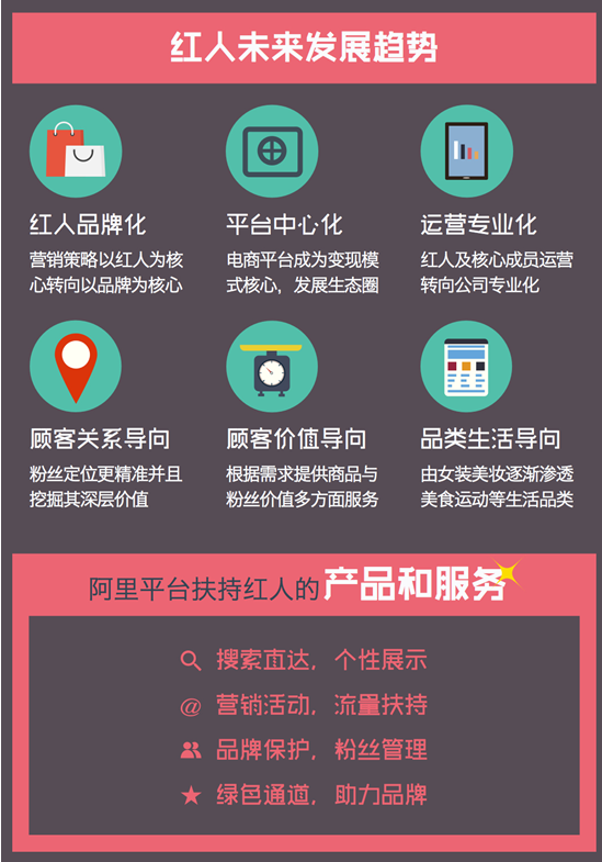 而据淘宝方面透露,未来平台将会从品牌保护、粉丝管理、产品支持及流量补充等多方面对于电商网红进行全面支持。