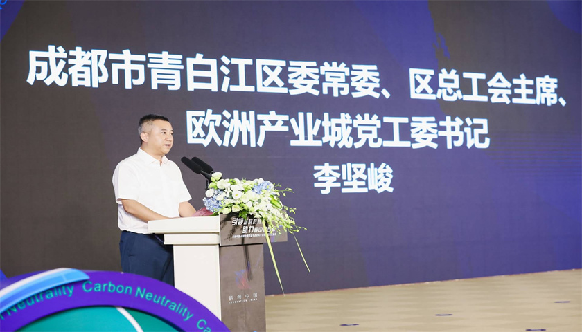 开幕致辞环节,青白江区委常委、青白江区总工会主席、欧洲产业城党工委书记李坚峻致欢迎辞,成都市科协领导卢晓东进行致辞。