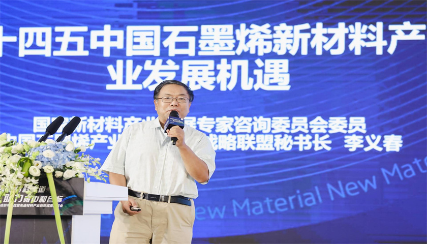 主旨报告环节,国家新材料产业发展专家咨询委员会委员、中国石墨烯产业技术创新战略联盟秘书长李义春进行了“十四五中国石墨烯新材料产业发展机遇”的报告。李义春认为,以石墨烯为代表的新材料是制造业的“底盘技术”,也是支撑制造业迈向高质量发展的关键,未来大有可为。李义春还对国内石墨烯发展形势作出四点判断,即产业规模增速放缓、科技创新成果不断涌现、石墨烯散热材料迎来发展热潮、疫情催生石墨烯应用新需求。
