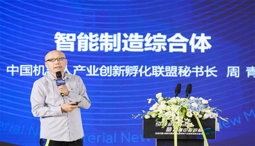 中国机器人产业创新孵化联盟秘书长周青对“智能制造综合体”进行分享。