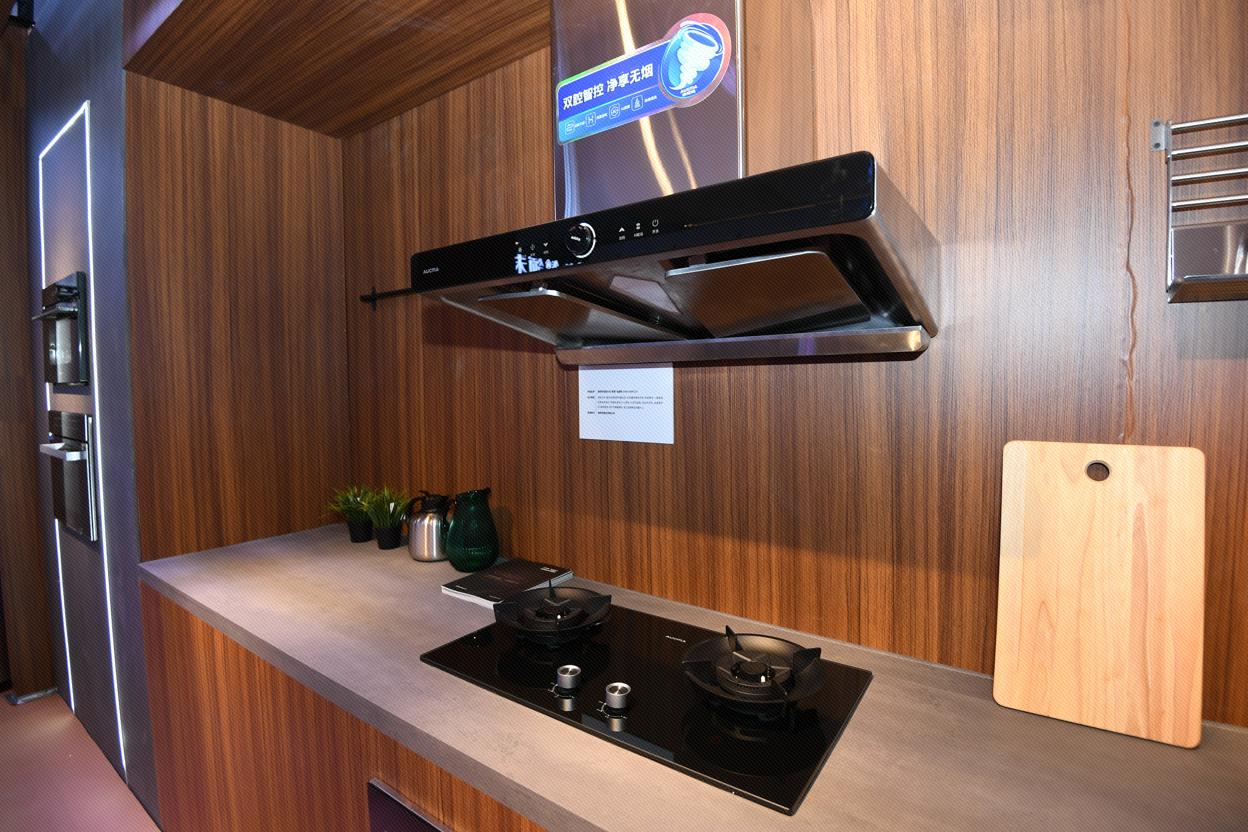 澳柯玛智慧厨房场景中展出的智慧烟灶套餐、蒸烤箱、消毒柜等产品,凭借亮丽的外观、智能体验也吸引众多观众驻足观看体验。
