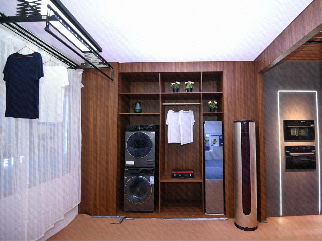 澳柯玛智慧家居场景中展出的衣柜嵌入衣物护理机、阳台叠放洗烘套装洗衣机、客厅圆柱3P柜机等新品,切合当前家庭需求的独特的设计、简约时尚的风格、多种人性化智能使用体验,让众多观众对澳柯玛产品有了耳目一新的认知。