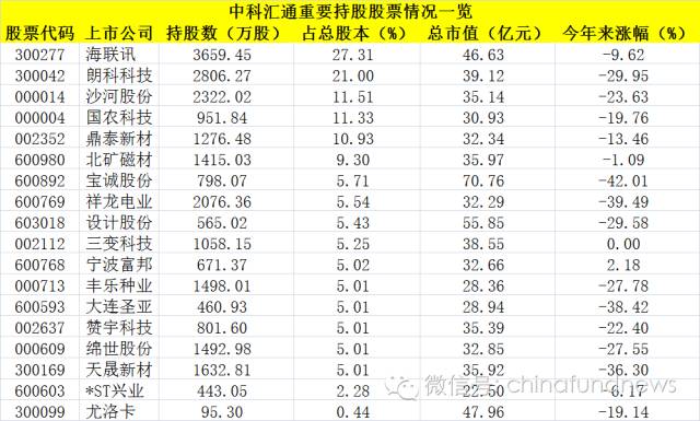 当然,鼎泰新材已经停牌,也买不来了,是过去时了。可能很多童鞋更想了解的是,中科招商还举牌了哪些股票了,这些会不会被借壳啊。那基金君就给大家拉个单子吧,当然不保证这些票都会被像顺丰这样的牛企业借壳哈。其实,仔细看看,这些股票今年也是跌了不少的,最近不是说壳股要被打击的么。