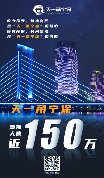 政府指导,宁波专属。“天一甬宁保”是宁波市着力打造的一款普惠型补充医疗保险产品。自8月10日上线以来,宁波市民踊跃参保,目前已有近150万宁波人加入。