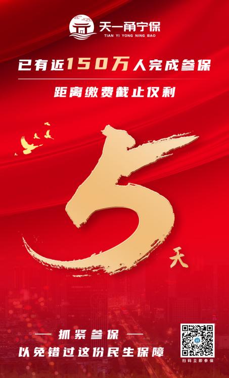 需要提醒市民的是,“天一甬宁保”首年度个人投保通道将于2021年9月30日24时关闭。也就是说,一旦错过这最后5天投保时间,2021年-2022年度将不能享受最高300万元保额的补充医疗保障。想参保的用户可通过“天一甬宁保”微信公众号和10家承保保险公司渠道进行参保,线上投保平台还支持医保个账支付,宁波市职工医保参保人员。