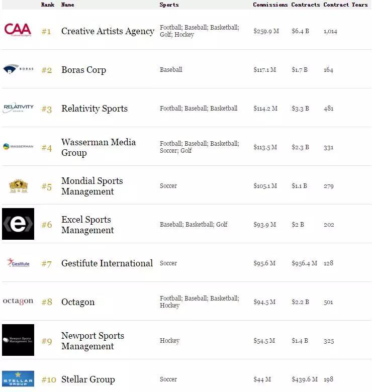 据《福布斯》的统计,Stellar Group在所有体育类经纪公司中全球排名第十,在足球经纪公司中排名第三,佣金收入高达4400万美元,手中的合同近4.4亿美元。从这个层面来看,Stellar Group无疑算得上足球经纪领域的第一集团。