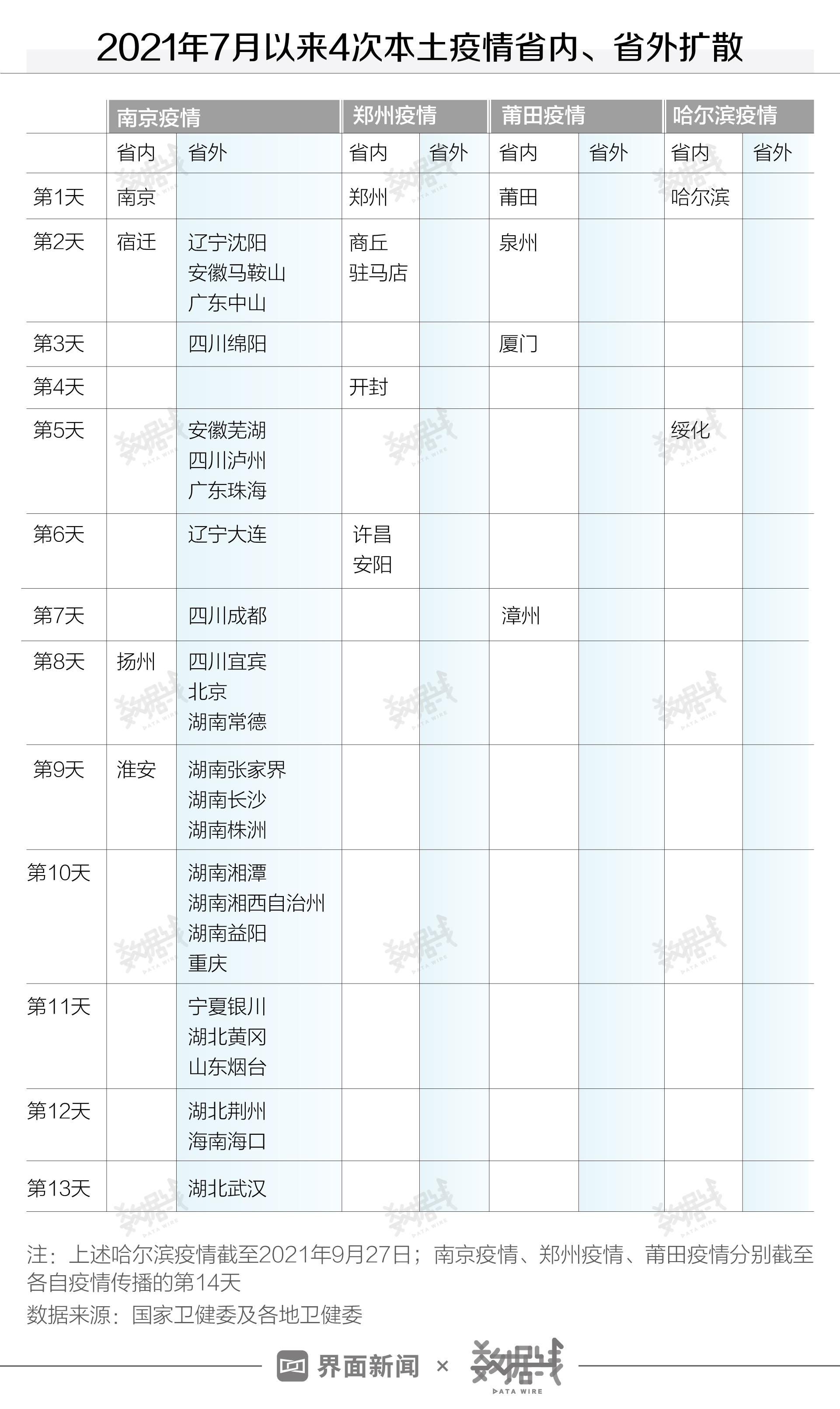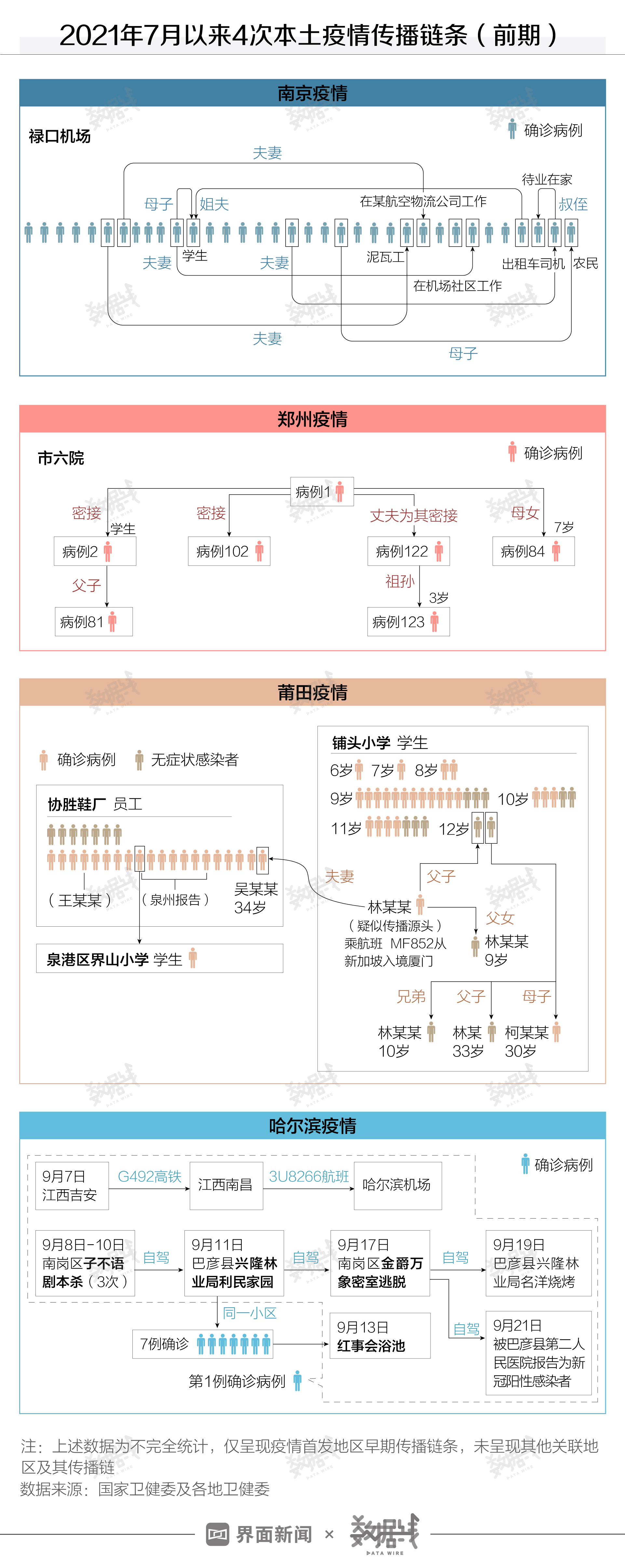2021年9月29日,距离国庆假期还有2天,自9月21日起出现的哈尔滨疫情已累计确诊超60例。自7月以来,国内先后经历过南京、郑州、莆田3次规模较大的本土疫情。与此前3次疫情相比,本次哈尔滨本土疫情传播有何不同?