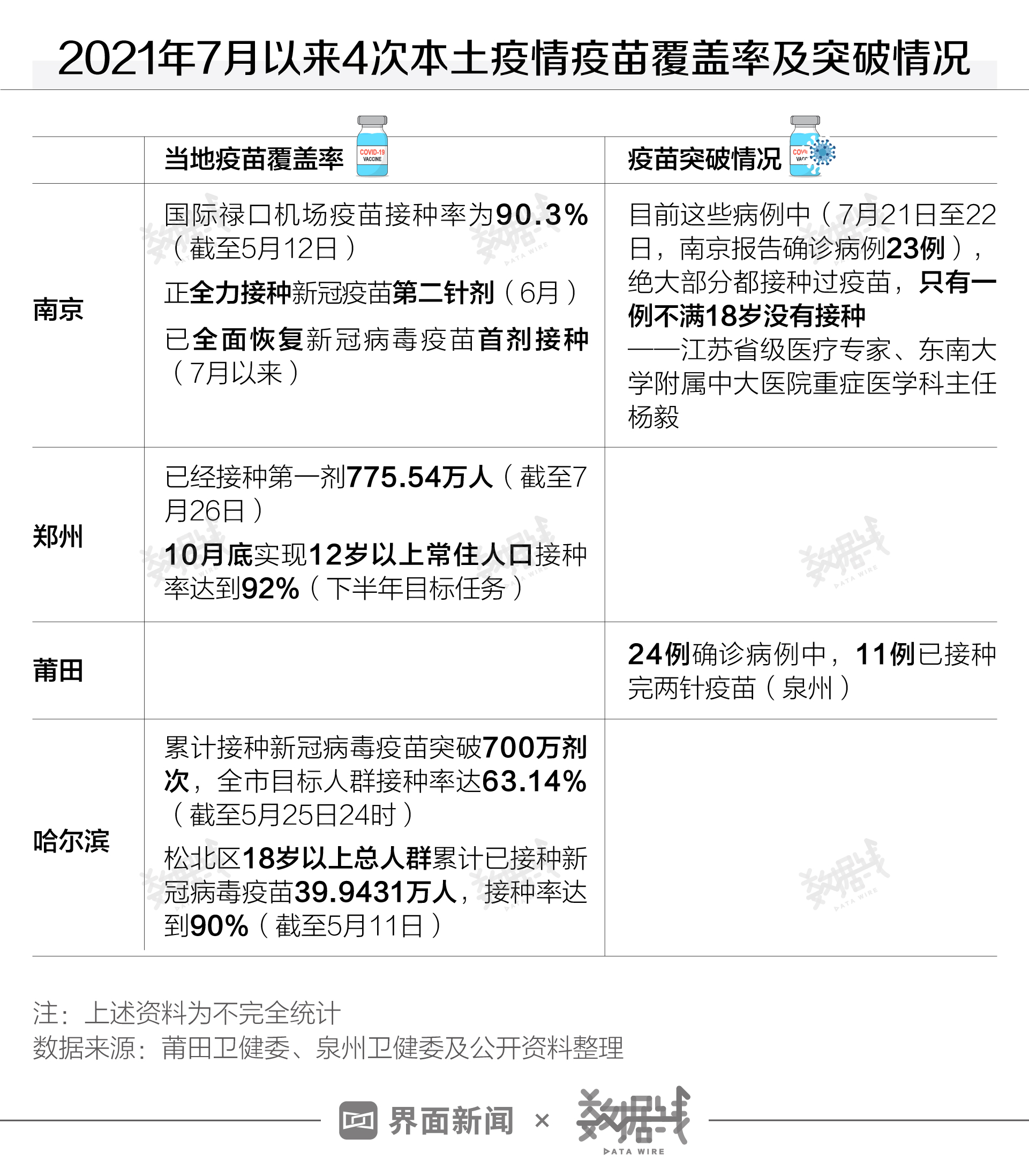此前南京、莆田疫情均存在“疫苗突破”情况。界面数据统计了莆田疫情中泉州确诊病例信息后发现,在截至9月20日的24例确诊病例中,有11例确诊病例此前已完成两针疫苗接种,占到确诊病例的近半数。