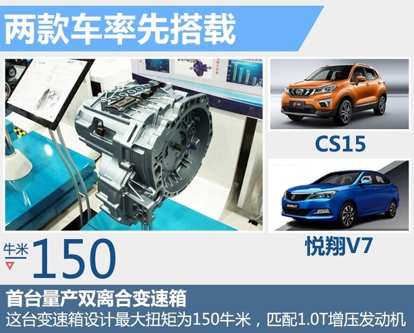 根据长安汽车“芯动力”战略,双离合变速箱是重要组成部分,由长安位于英国的研发中心和重庆动力研究总院负责研发。网通社从重庆青山工业有限责任公司获悉:长安汽车已同意青山DCT170变速器总成(DF515A03/DF515A02项目)。代号DCT170的变速器是长安历时8年研发的5速双离合变速箱,目前已正式进入量产阶段。长安汽车品牌公关总经理杨大勇透露,5速双离合变速箱将率先搭载在长安今年推出的小型SUV—CS15上。此外,悦翔V7也是首批搭载5速双离合变速箱的车型。