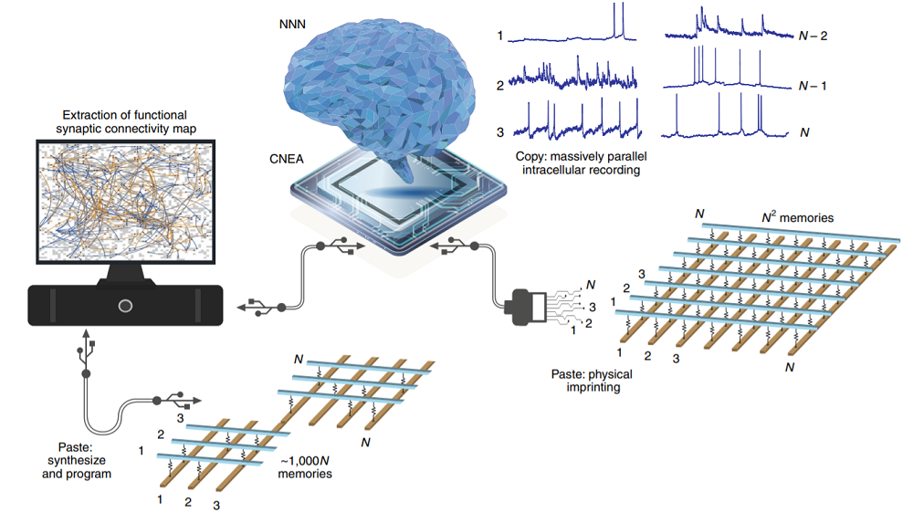 在“粘贴”这一步,三星和哈佛大学的研究团队则计划当记录下细胞内神经信号后,用专门设计的存储器网络下载信号,构建自然神经网络。
