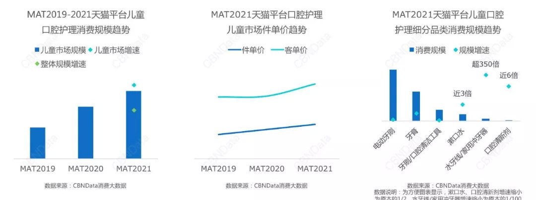 市场上流行“孩子的钱是好赚的”,此话或也适合儿童口腔护理市场,若品牌和门店想要抓住这一波红利,可在儿童护理产品上花费些心思,通过新奇好玩有趣且有品质保障的产品,吸引消费者为孩子买单,进而刺激销售的提升,和消费人群的进一步触达。