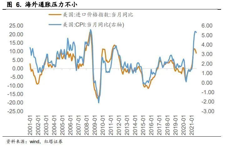 现在结构性通胀并没有得到明显缓解,而基本面大概率会比上半年更弱。毕竟因为房地产政策收紧、房企销售放缓等,后续房地产投资下行压力会更大,加上政策限产、疫情零星反复抑制居民消费等的影响,预计后续几个月基本面的走势会比今年上半年更弱。