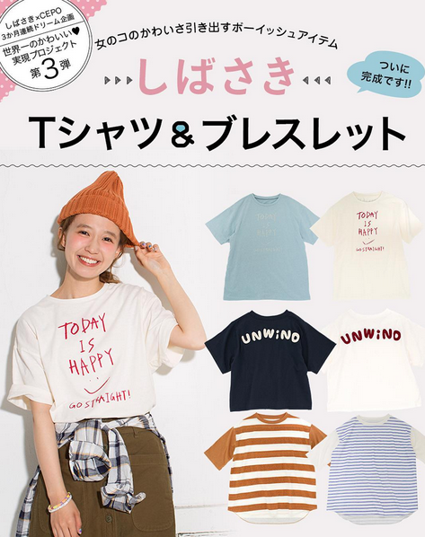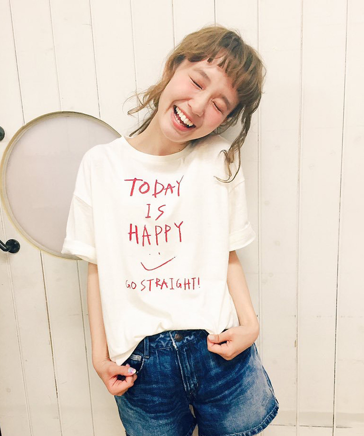 日本小众品牌Cepo最近和杂志模特柴田纱希合作了一款笑脸T,上面的字样是有纱希亲自设计“Today Is Happy”。