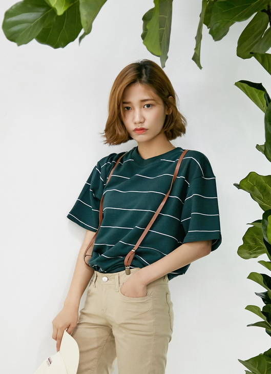 12、Mossbean 条纹T
