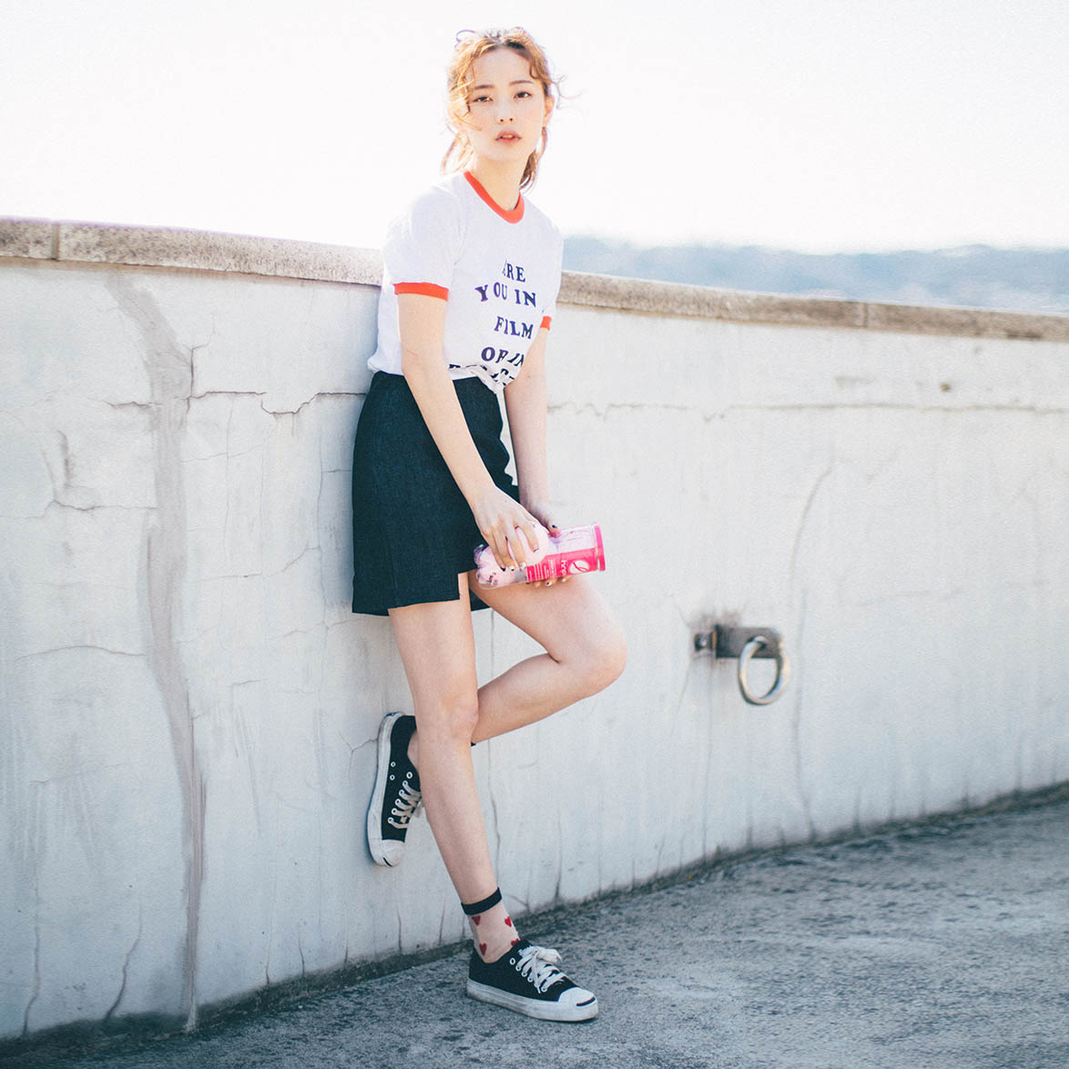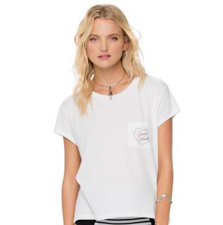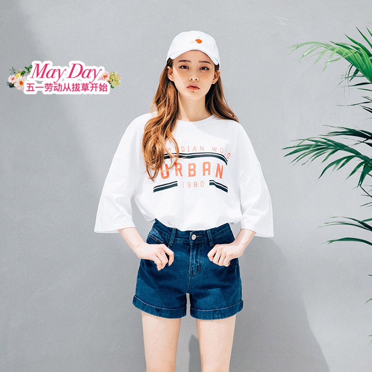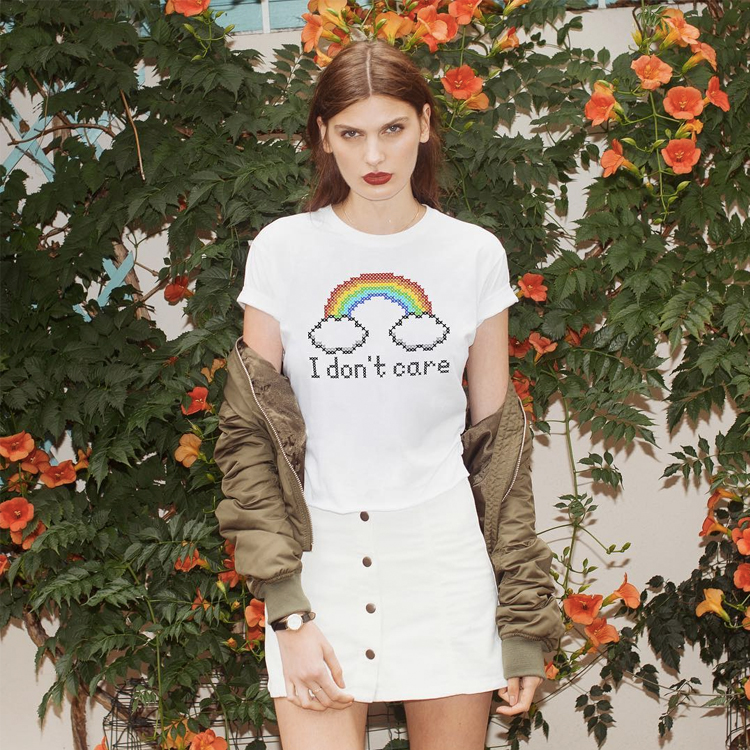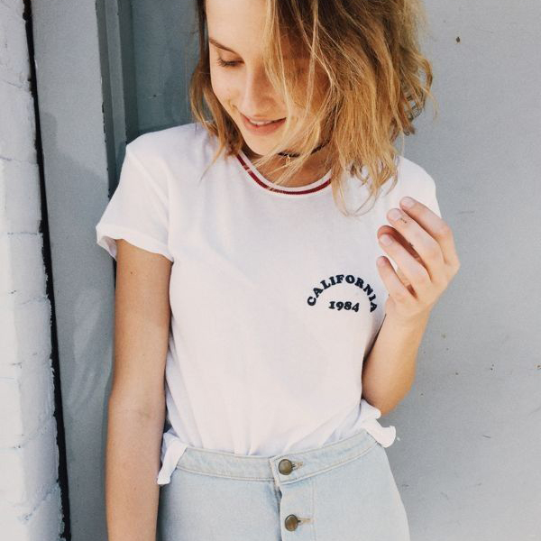这件清爽的白T来自Brandy Melville,走热情洋溢的美式休闲风。