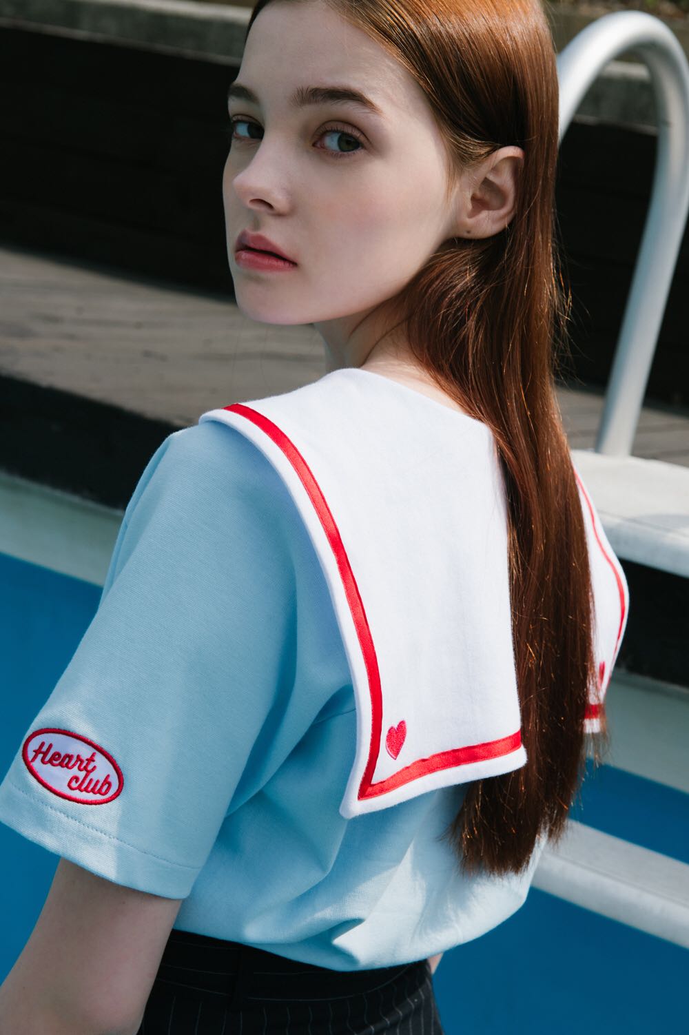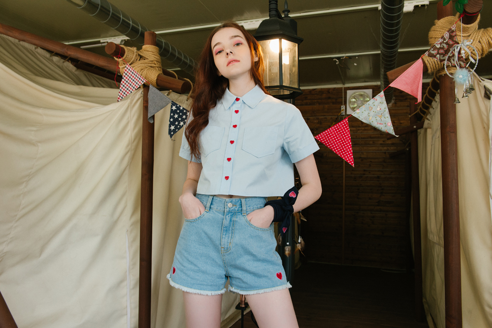 这个Heart Club系列,随处可见心形元素,你的领口、袖口、小扣子,都是一个个可爱的红桃心。