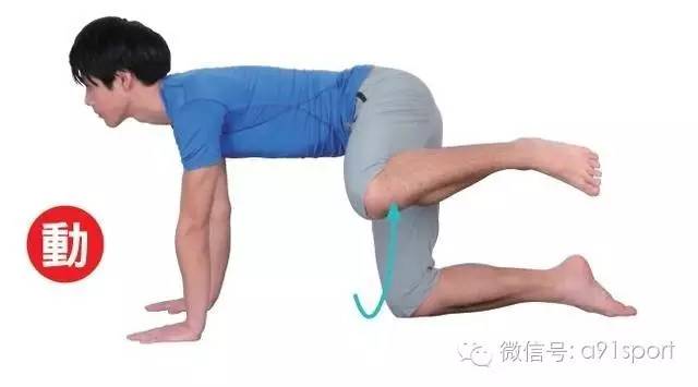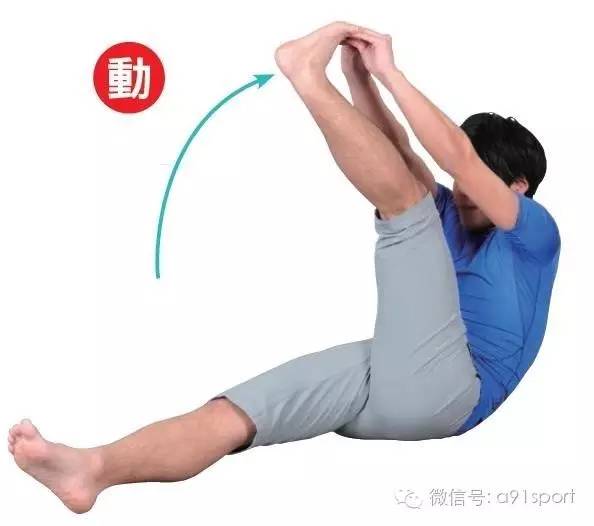 单脚跪立,双手抓住后脚。把后脚往上扳,伸展后脚。