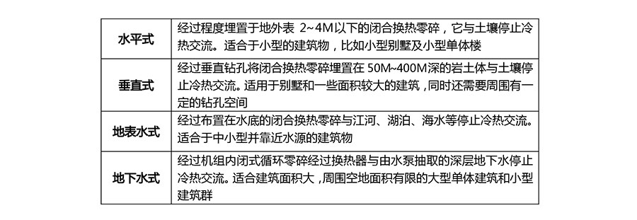 从类型上看,地源热泵主要分为水平式、垂直式、地表水式、地下水式四种。