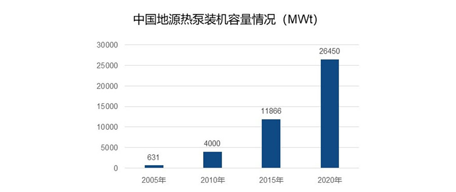 2020年中国地源热泵装机容量约2.645万兆瓦,2015-2020年复合增长率为17%;国内地源热泵装机容量占全球的比重上升到34.11%,且增长速度持续加快。