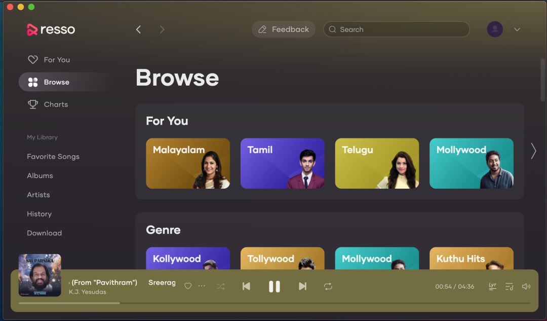 虽然几乎所有在线音乐流媒体平台都有算法荐歌功能,但都不如Resso做得彻底。下载注册好Resso,登录账号,选择喜欢的风格和歌手,首页就会根据用户的选择推荐歌曲。和其他音乐软件不同,Resso的主页没有排行榜、歌单,只有单独的播放界面。用户无法指定歌曲,但可以通过上下滑动来切换歌曲。