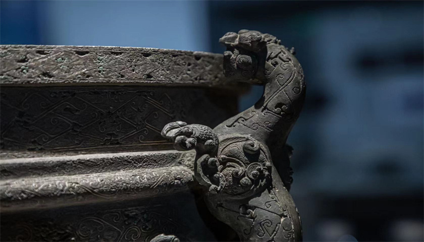 展览至此上升到更高的维度,将视野扩大到黄河与长江之间广袤的区域,透过长江、黄河流域青铜之间的“对话”,展现出长江文明、黄河文明既相互区别又相互影响的密切联系,可洞悉中华文明“多元一体”千年传承的文脉。