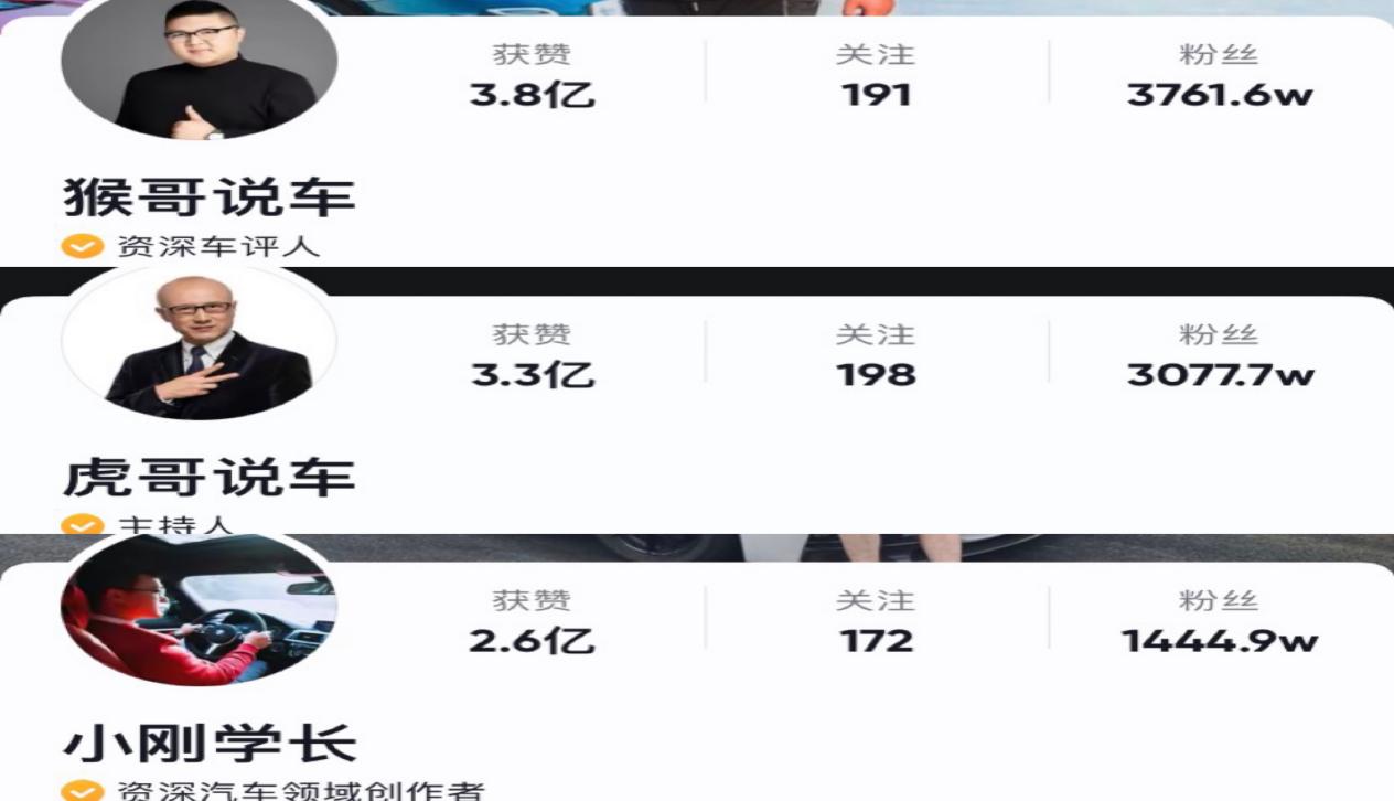 其实关于车企“充值”(花钱做广告)的话题普遍存在于各大抖音汽车媒体“大V”,“猴哥说车”、“虎哥说车”、“小刚学长”三个抖音号加起来超过八千万人,却先后传出为理想汽车过度宣传的质疑声。