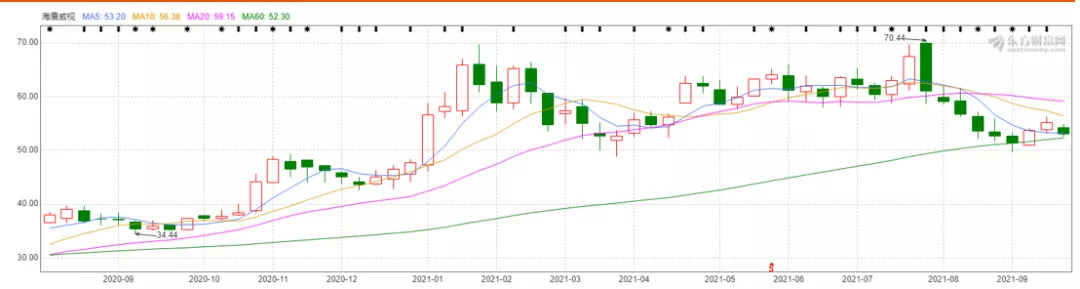 作为该基金中报的头号重仓股海康威视,在一季度年后经历大幅回调过后,二季度小幅反弹,整个二季度和三季度基本上就处于横盘震荡状态,表现比较一般。