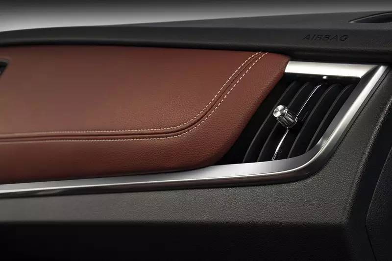同级别最大面积的软材质包覆和细致做工,让荣威RX5的内饰品质直追豪华品牌。仪表台整体采用德国Slush-molding搪塑成型技术,触感柔软。触摸屏由大面积的法式双缝线小荔枝纹皮革包裹,搭配“蓝芯”车型专属的玛莎拉红内饰配色,浪漫与豪华感油然而生。尤其值得一提的是,荣威RX5内饰电器件的面差为0mm,间隙匹配控制在0.1-0.3mm之间,甚至连一张名片都插不进去,品控标准已经全面赶超合资豪华品牌。