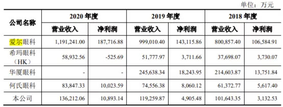 不难看出,普瑞眼科的业绩虽然持续增长,但整体规模不大,这一点和一些同行相比颇为明显。