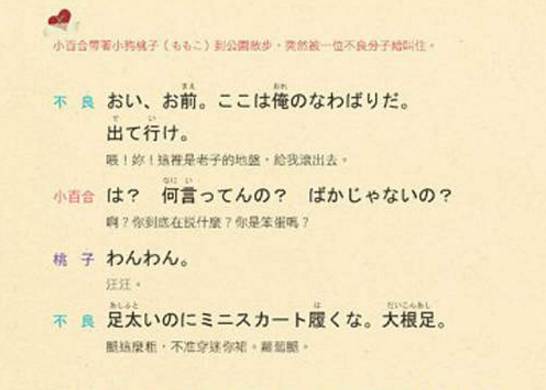 日本的语言类教科书中,这样无厘头抽风的会话还有很多。像这本面向日本人的中文教科书。